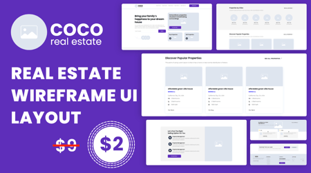Create a Real Estate website using this wireframe UI kit. It is a multipurpose Wireframe UI